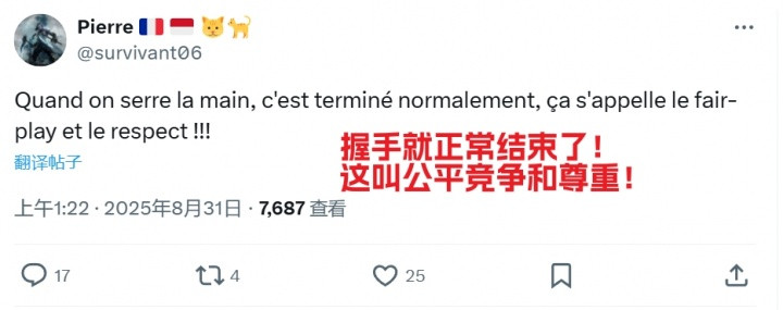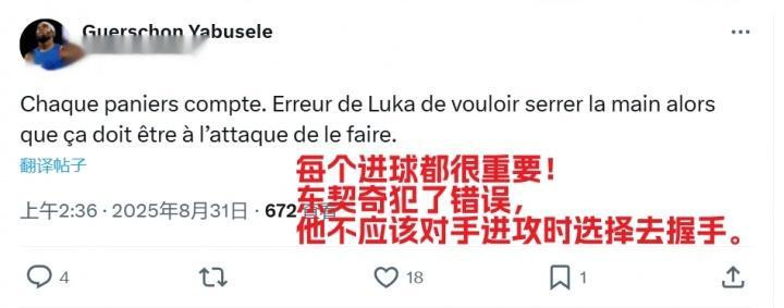法国球员亚布塞莱社媒上和网友复兴时谈到了此事。