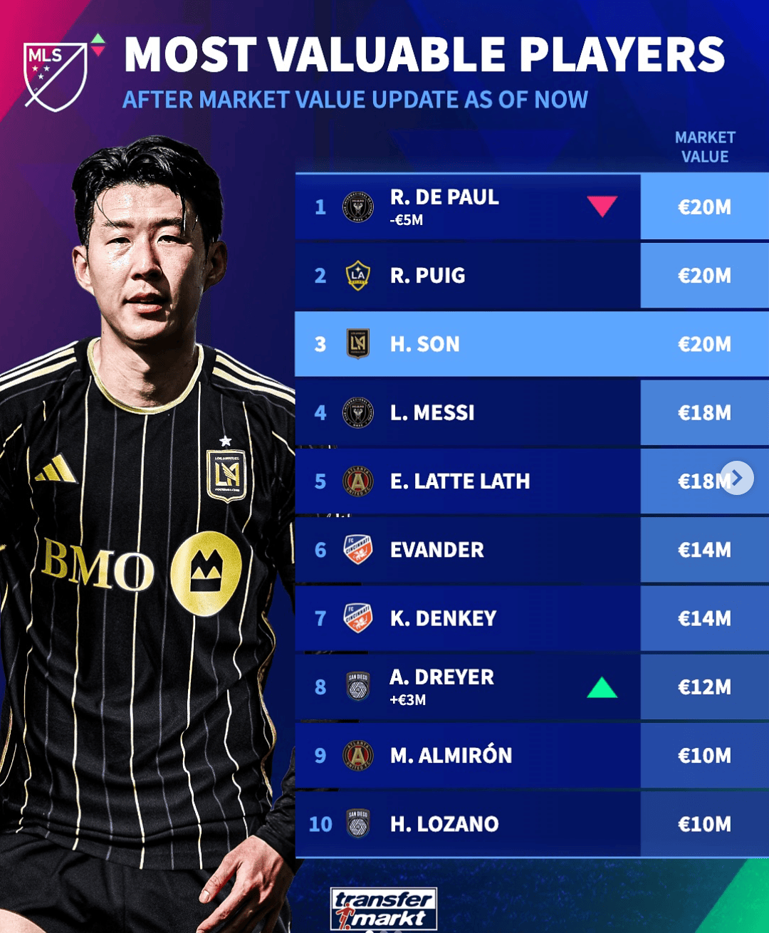 3. 孙兴慜(洛杉矶FC):2000万欧
